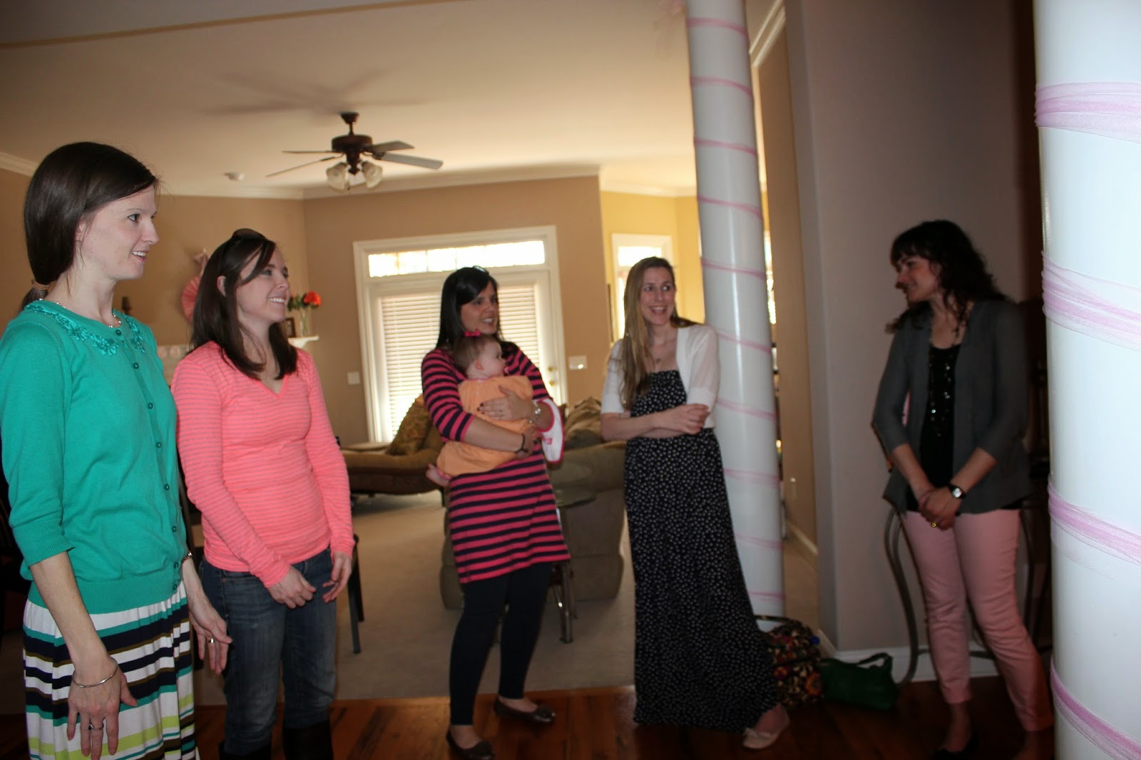 Last month, me and a few friends hosted a sweet baby shower for a friend in our Sunday School class. She is having her 3rd baby and it's a girl! We chose to do a tea party with a monogram theme. It was so sweet! I had a really fun time working with my friends Julie and Jenn to make sure everything was perfect for baby Jocelyn's shower. We had several snacks including wraps, strawberry sandwiches, fruit, petit fors, and more. I had fun coming up with a few monogrammed touches for decorations using my Cricut machine too. For our activity, we decided to let everyone decorate teacups. We found blank white teacups and had tons of colored sharpies for everyone to draw on their cups. Because of a time constraint, we went them home with instructions to bake the cups for 1hr in the oven on 350 then turn off the oven and let the cup cool in the oven. Everyone was so creative and it was fun to see the many different ideas we all had for our cups. Then lastly, Jocelyn was showerd with so so many cute, girly gifts! We can't wait to meet her... any day now, probably!